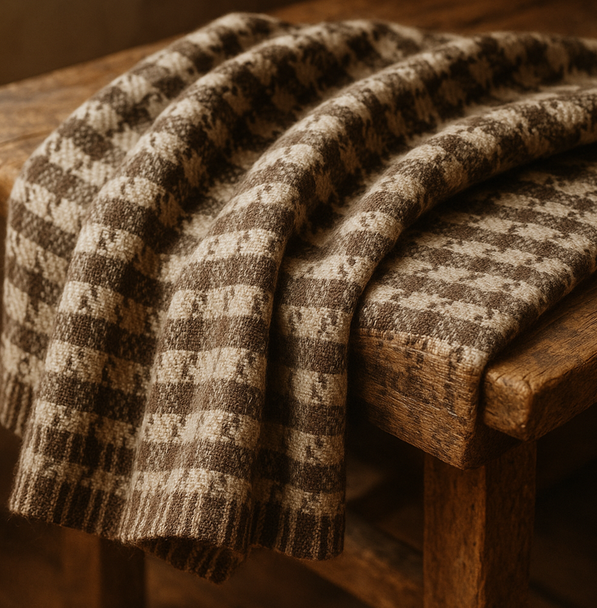 چهارخونه شاهماهی (Houndstooth) یا "دندان سگ"، الگویی منحصر به فرد با شکلی نامنظم و زاویهدار است که به دلیل شباهت به رد پای سگ شکاری، این نام را گرفته است. این طرح بیشتر در پارچههای پشمی و برای لباسهای رسمی و فاخر دیده میشود و حس کلاس بالا و اعتماد به نفس را منتقل میکند.
